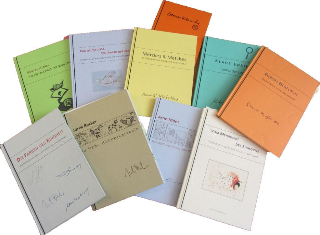 Mit der Hommage zum 100. von Werner Klemke mit dem Buch „Kinder kennen Klemkes Kater” begann die Kooperation und Förderung durch die Pirckheimer-Gesellschaft und Abel Doering erstellte ihnen eine Internetpräsenz. Es erschienen: „Du liebe Hühnerkastanie” zur Postkartenpoesie Jurek Beckers, „Arno Mohr von hinten oder Nichts geht verloren”, „Ensikat unter der Lupe”, „Ein Pferd für den König und den Prinzen – Metzkes & Metzkes”, „Bücher fallen nicht vom Himmel” als Hommage á Franz Fühmann und Egbert Herfurth. Es folgten 2022 “Die Farben der Kindheit” zur Kindheit von Jurek Becker, Franz Fühmann, Günter Grass und Christa Wolf, 2023 „Pax questuosa – Ein Friedensbuch“, 2024 „Vom Aufstehen mit Eva, mit Abel , mit Noah und mir“ und 2025 „Vom Mehrwert des Einhorns“.