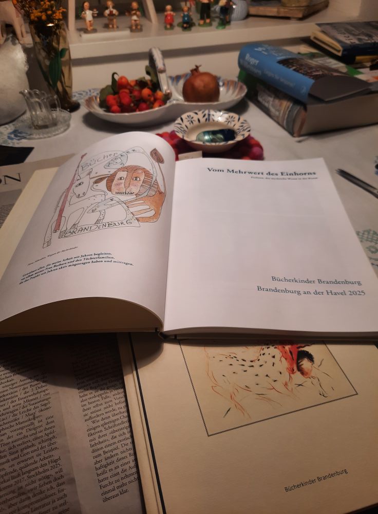 Gestern kamen die ersten zwanzig Bücher der Bücherkinder Brandenburg, frisch gebunden, nach einem Jahr Arbeit bei mir an.