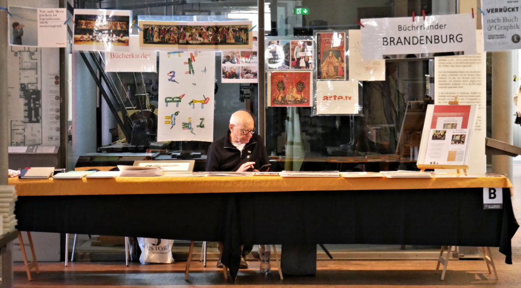 Der Stand der Bücherkinder Brandenburg waren im Erdgeschoss der Neuen Fabrik zu finden, siehe Messe-Guide.